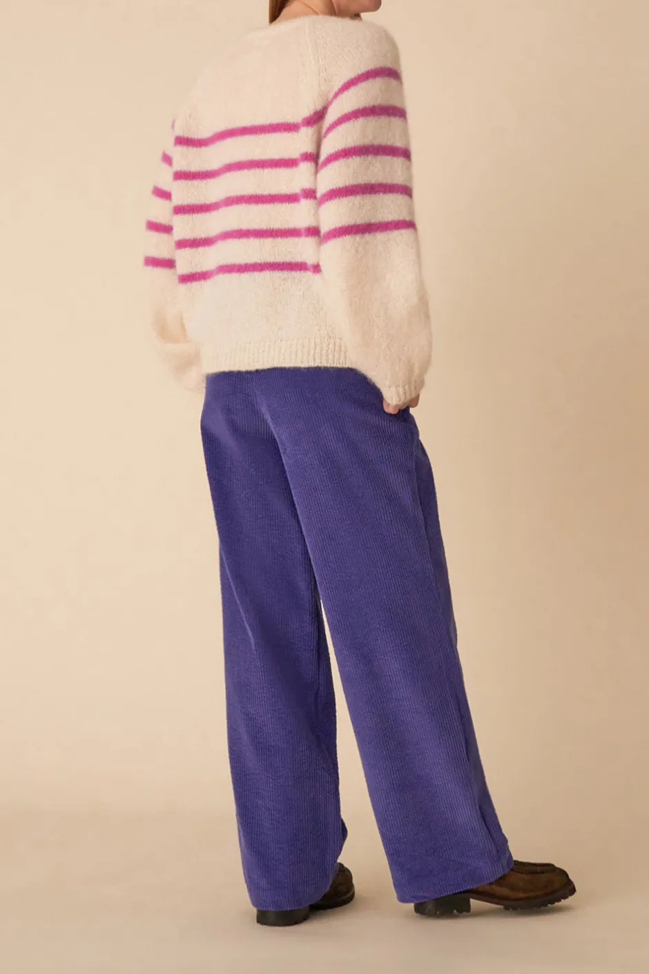 DPH dépoussière la classique marinière pour en faire un irrésistible pull. En maille douce et fluffy, volume maxi, manches raglan et rayures pop dynamisent cette pépite. • Pull oversize • Col rond • Manches raglan • Rayures marinière • Finitions en bord-côte • Pull marinière réalisé en fil italien du groupe « Puffy » composé de Super Kid Mohair d’Afrique du Sud certifié RMS, d’Alpaga du Pérou, de laine et de polyamide créant un fil duveteux, doux et chaud au porté. • Coloris Écru et Crush : un blanc écru naturel et un rose vibrant • Modèle dessiné à Paris par notre styliste • Longueur : 57 cm pour une taille 1 • Martina mesure 1m71 et porte une taille 1 • Conseil style : portez-le avec le pantalon Timousse les Chelsea boots Lysette pour un look rétro chic contemporain • Conseil taille : cet article taille normalement, choisissez votre taille habituelle