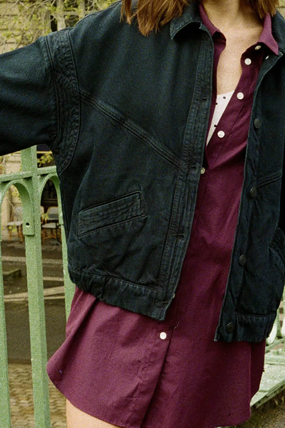 Cette saison, l’iconique veste en jean femme se porte coupe oversize et légèrement resserrée en base pour apporter une touche 90’s à vos looks. Déclinée dans une version hivernale avec son denim noir, impossible de résister à cette pépite de style. • Veste en jean délavé • Découpes • Emmanchures tombantes • Ouverture par patte de boutonnage • Poches passepoilées • Côtés élastiqués en base pour un effet bouffant • Eco délavage réalisé sans produit chimique avec des machines consommant très peu d’énergie • La ligne de denim est travaillée en collaboration avec une spécialiste du denim éco-responsable • Tissu et manufacture certifiés GOTS • Coloris Charcoal : un jean noir comme le charbon • Modèle dessiné à Paris par notre styliste • Longueur : 62 cm pour une taille 1 • Madalena mesure 1,77m et porte une taille 1 • Conseil look : portez-la avec une pièce plus fittée comme le jean Lulu pour une silhouette structurée • Conseil taille : veste en jean oversize à volume généreux. Emmanchures décalées, coupe ample et confortable.