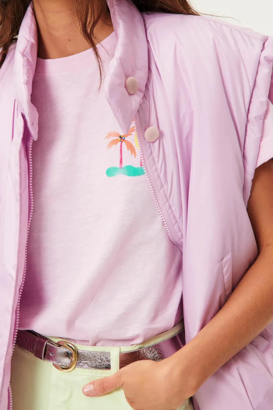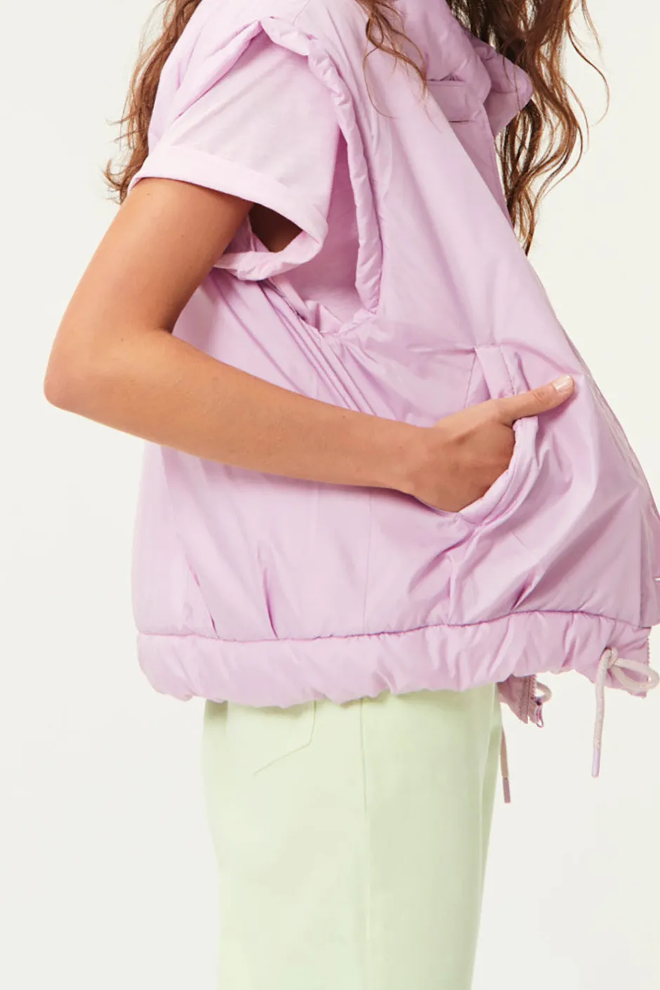Empruntée au vestiaire 80’s, la veste sans manches s’impose comme LA pièce forte d’entrée de saison. Légèrement molletonnée et emmanchures tombantes, à porter coupe droite ou resserrée sur un jean ou un short, coup de coeur pour cette veste pastel. • Veste sans manches • Molleton léger • Emmanchures tombantes • Col montant • Coupe droite resserrable en base par cordon • Poches sur les côtés • Ouverture zippée • Boutons recouverts • Coloris Lassi : un rose pastel tendre • Modèle dessiné à Paris par notre styliste • Longueur : 65,5 cm pour une taille 1 • Madalena mesure 1m77 et porte une taille 1 • Conseil style : portez-la sur le t-shirt Josephine avec le jean Louadi pour un look urbain
