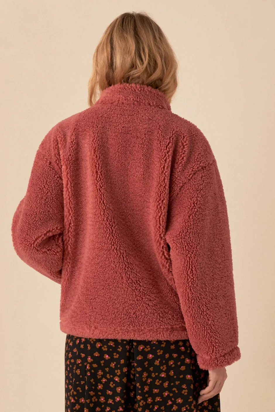 Porté coupe droite ou resserré, cette saison le sweat femme prend la forme d’un pull technique. En maille bouclette esprit peau lainée, col camionneur et doté de poches zippées, son coloris et son look outdoor feront de lui une pièce forte de votre dressing d’hiver. • Sweat en maille bouclette effet peau lainée • Coupe oversize • Manches longues • Col camionneur zippée • Poches zippées devant • Cordon de serrage en base • Coloris Praline : un vieux rose vaporeux • Modèle dessiné à Paris par notre styliste • Longueur : 62 cm pour une taille 1 • Alex mesure 1,74m et porte une taille 1 • Conseil style : portez-le avec le jean Louisette et des baskets running • Conseil taille :Ce modèle a été imaginé pour un porté oversize. Si vous souhaitez un rendu plus ajusté, prenez la taille inférieure.