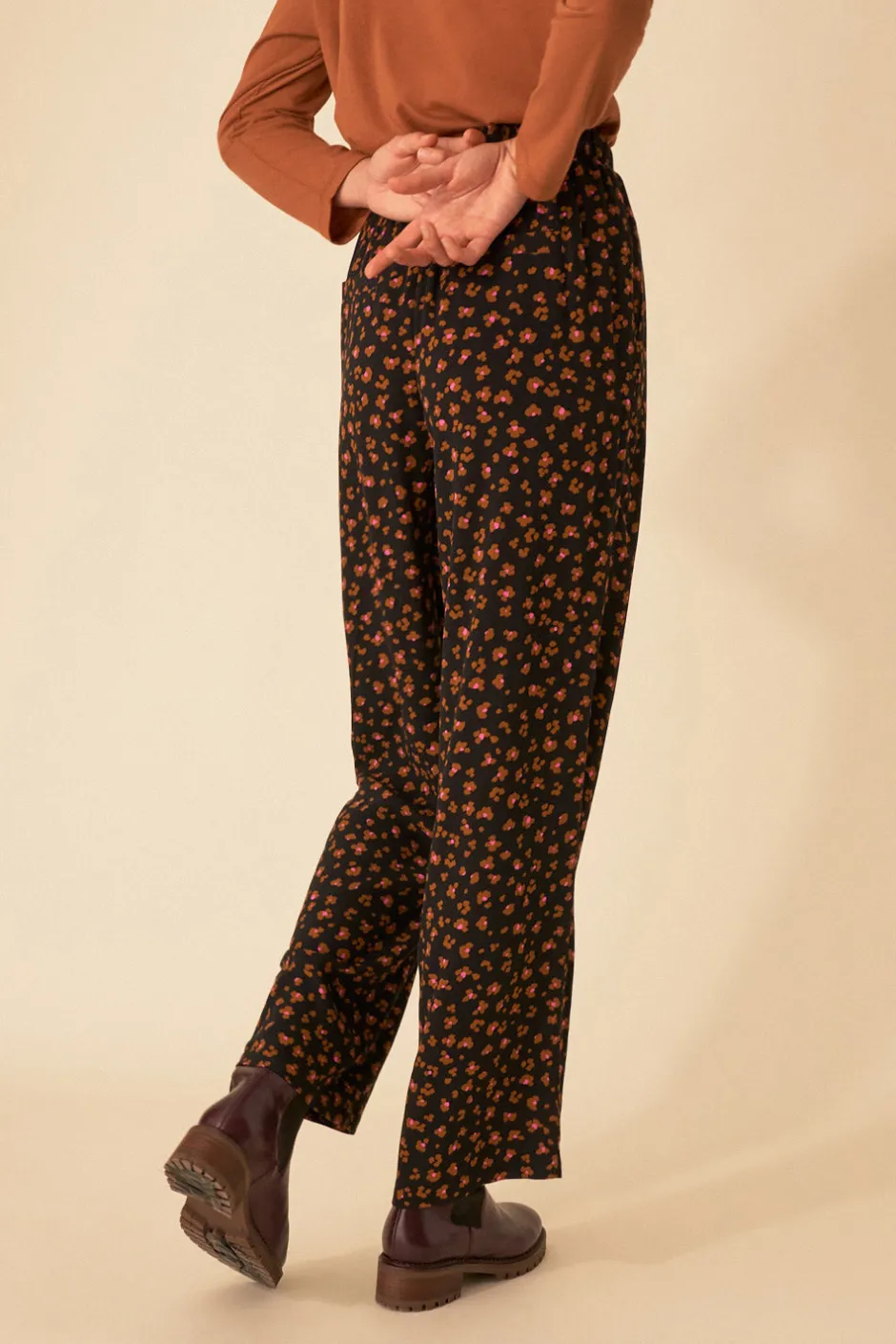 Chic avec un pull noir et des bottines ou plus casual avec des baskets, le pantalon large sort de sa zone de confort pour égayer l’hiver et s’anime d’un motif léopard revisité pour un look rétro contemporain. • Pantalon large • Jambes droites • Porté fluide • Viscose imprimée • Taille élastiquée froncée • Poches italiennes • Imprimé exclusif Des Petits Hauts « Léo « , un imprimé léopard revisité sur fond noir qui joue le trompe-l’oeil avec de petites fleurs • Modèle dessiné à Paris par notre styliste • Longueur sans la ceinture : 100 cm pour une taille 1 • Madalena mesure 1,77m et porte une taille 1 • Conseil style : portez-le avec des baskets et le pull Ashtone pour un look city cosy • Conseil taille : cet article taille normalement, choisissez votre taille habituelle
