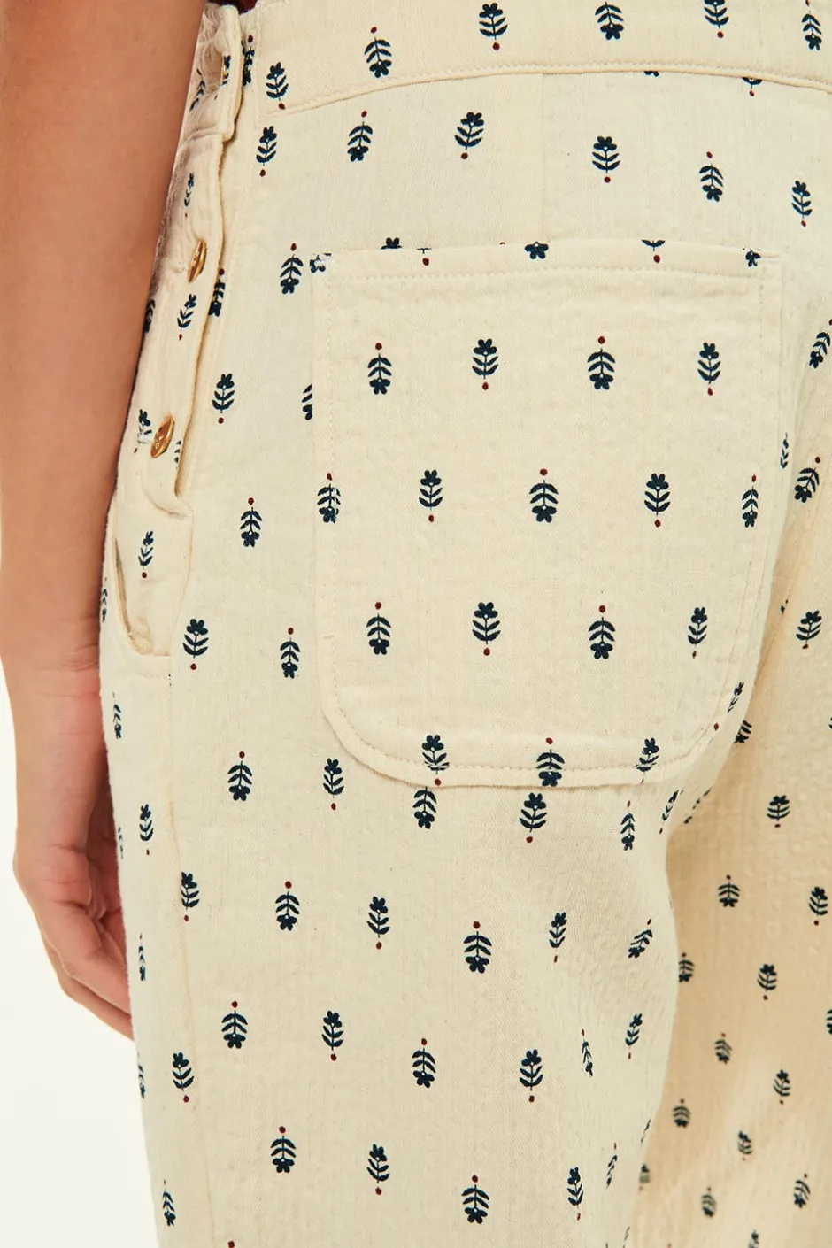 La salopette femme regagne ses galons mode et fait un retour remarqué dans nos dressings avec cette version bohème chic. En coton à l’aspect légèrement gaufré et imprimée d’un motif floral poétique, impossible de passer à côté. • Salopette femme • Coton à l’aspect gaufré • Bretelles réglables par boucle • Poches devant et dos • Fermeture boutonnée sur les côtés • Imprimé exclusif Des Petits Hauts Oli dessinant des petites fleurs bleues inspirées des graphismes artisanaux indiens sur un fond écru • Modèle dessiné à Paris par notre styliste • Longueur : 127 cm pour une taille 1 • Kathie mesure 1m77 et porte une taille 1 • Conseil style : portez-la sur un t-shirt ou un débardeur avec des sandales plates pour le printemps