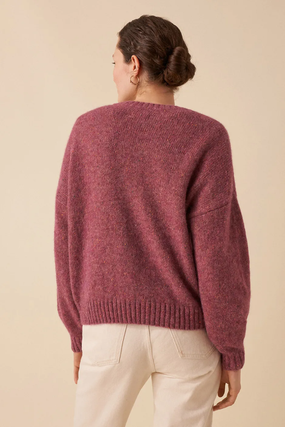 Volume boule et réalisé en baby alpaga et laine mérinos à l’effet moucheté pour un look vintage, le gilet femme regagne son statut d’indispensable et marquera le tempo tout au long de la saison. • Gilet boule • Volume large • Encolure V • Emmanchures décalées • Ouverture boutonnée • Finitions en bord-côte • Gilet femme réalisé en nouveau fil italien du groupe « Boutonné » composé d’un mélange de coton biologique, laine Mérinos certifiée RWS, Baby Alpaga et nylon recyclé. Le fil de coton ressort légèrement, ce qui lui donne un aspect boutonné. Aspect duveteux et très doux au porté. • Coloris Praline : un vieux rose vaporeux • Modèle dessiné à Paris par notre styliste • Longueur : 55 cm pour une taille 1 • Léa mesure 1,77m et porte une taille 1 • Conseil style : portez-le avec un pantalon large fluide ou une jupe longue pour une silhouette au chic décontracté • Conseil taille : cet article taille normalement, choisissez votre taille habituelle