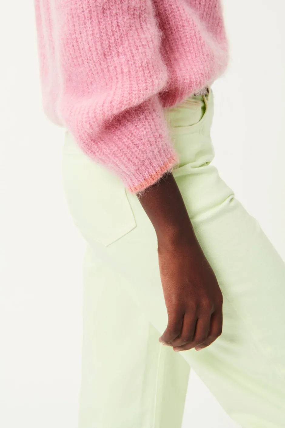 Le vestiaire de printemps se teinte de couleurs pastel douces et poétiques avec ce gilet en Kid Mohair. Doux et cosy, il fera pétiller vos looks. • Gilet côtelé • Emmanchures raglan • Encolre V • Ouverture boutonnée • Finitions contrastées • Gilet chaud femme réalisé en fil italien du groupe « Moelleux » en Kid Mohair et laine mérinos certifiée sans Mulesing. Fil gonflant, chaud, très doux et duveteux. • Coloris Rose et Oasis et Mimosa et Écru : un rose bubble gum tendre et régressif et un orange pastel vitaminé ou un jaune mimosa éclatant et un blanc écru naturel • Modèle dessiné à Paris par notre styliste • Longueur : 56 cm pour une taille 1 • Faaby mesure 1m75 et porte une taille 1 • Conseil style : portez-le avec le pantalon Simeon et un sac banane pour un look urbain