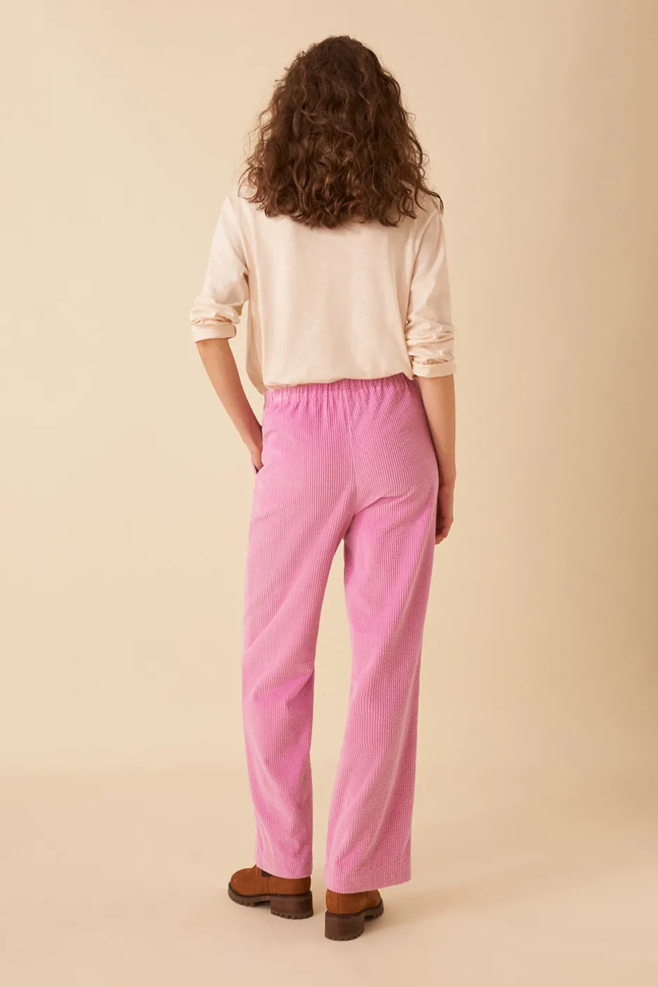 Matière vedette cette saison, le velours côtelé fait un retour remarqué dans les vestiaires. Décliné en robe, combinaison ou chemise, il sera absolument partout comme avec ce pantalon large à l’esprit rétro qui promet un hiver résolument stylé et cosy. • Pantalon en velours côtelé • Jambes larges droites • Taille élastiquée • Poches italiennes sur les côtés • Le velours côtelé compte parmi les tissus les plus résistants, solides et durables. C’est également un tissu chaud et très agréable à porter. • Coloris Guimauve : un rose bonbon tendre régressif • Modèle dessiné à Paris par notre styliste • Longueur : 104 cm pour une taille 1 • Léa mesure 1,77m et porte une taille 36 • Conseil style : portez-le avec le pull marinière Dubol et la doudoune sans manches Vicky pour un look hivernal cosy • Conseil taille : cet article taille normalement, choisissez votre taille habituelle