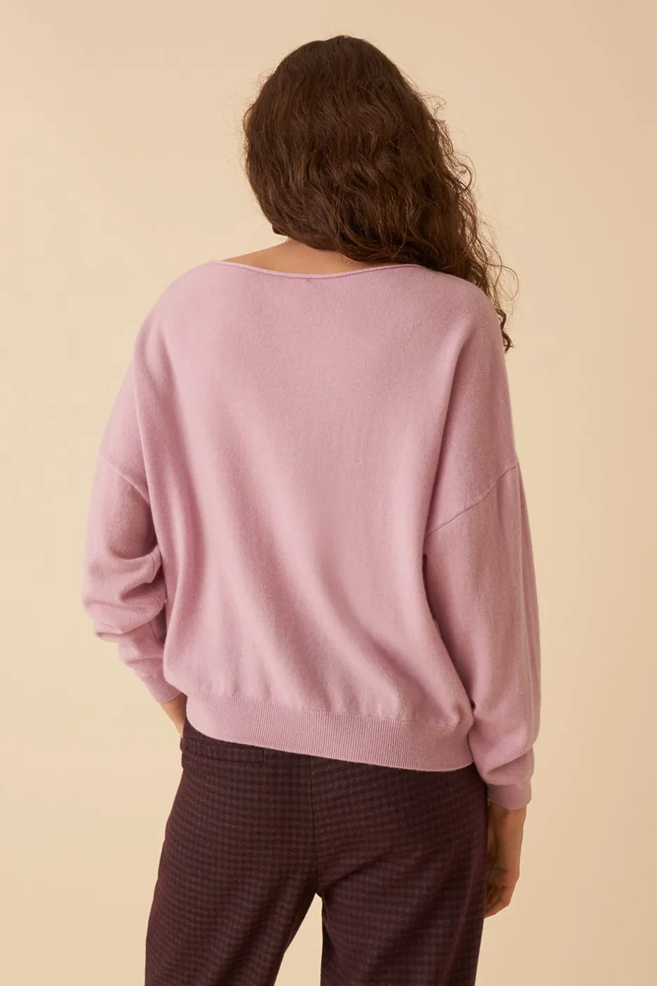 Le pull en laine Mérinos adopte un look minimaliste pour l’automne. Porté à même la peau avec le combo jean/baskets, il vous suivra saison après saison. • Pull volume large • Manches longues • Emmanchures décalées • Encolure bateau roulotté • Bas de manches et base resserrés en bord-côte • Pull fin femme réalisé en fil italien du groupe « Mérinos » en laine Mérinos extrafine. Maille fine toucher cachemire douce et chaude au porté. • Coloris Milkshake : un mauve pâle doux • Modèle dessiné à Paris par notre styliste • Longueur : 58,5 cm pour une taille 1 • Léa mesure 1,77m et porte une taille 1 • Conseil style : portez-le avec une broche Des petits Hauts et le jean Louis 1 pour un look chill et cosy • Conseil taille : Ce modèle a été imaginé pour un porté oversize. Si vous souhaitez un rendu plus ajusté, prenez la taille inférieure.